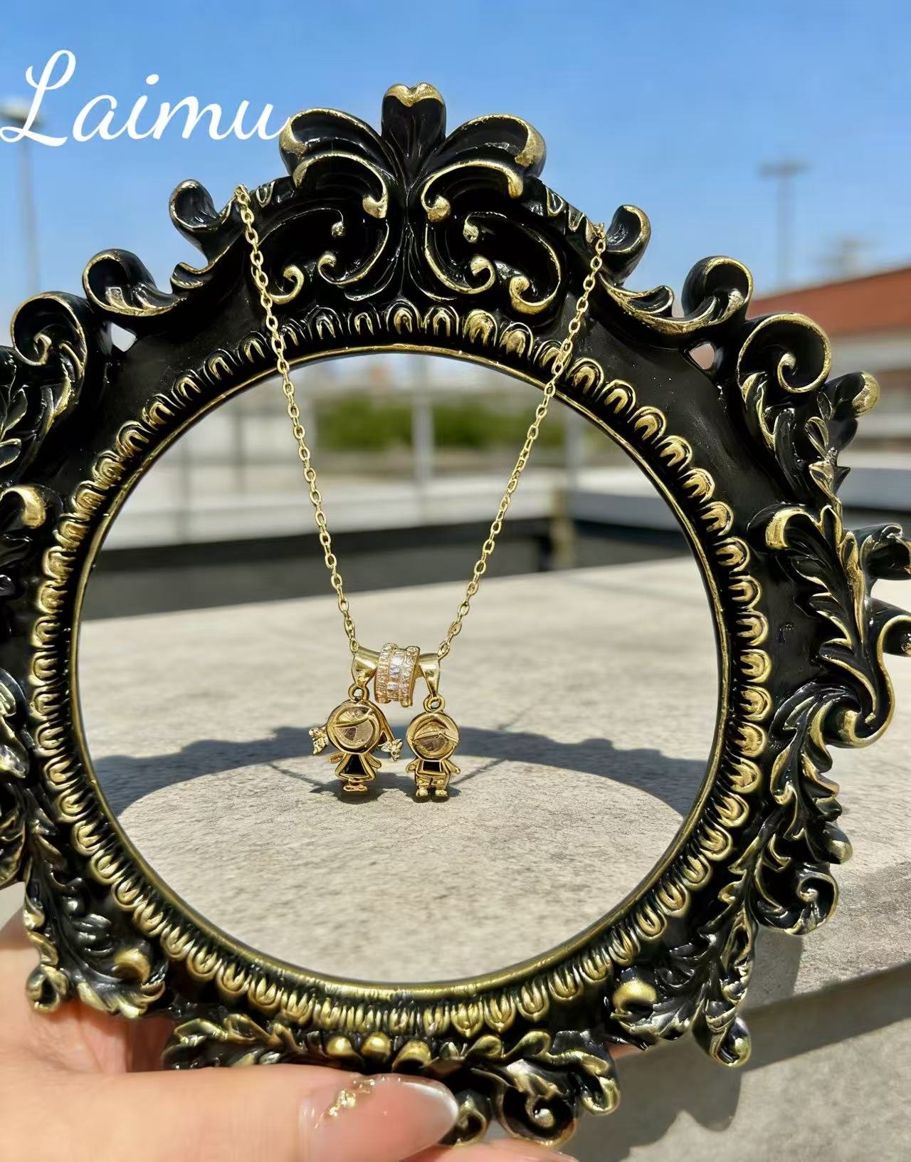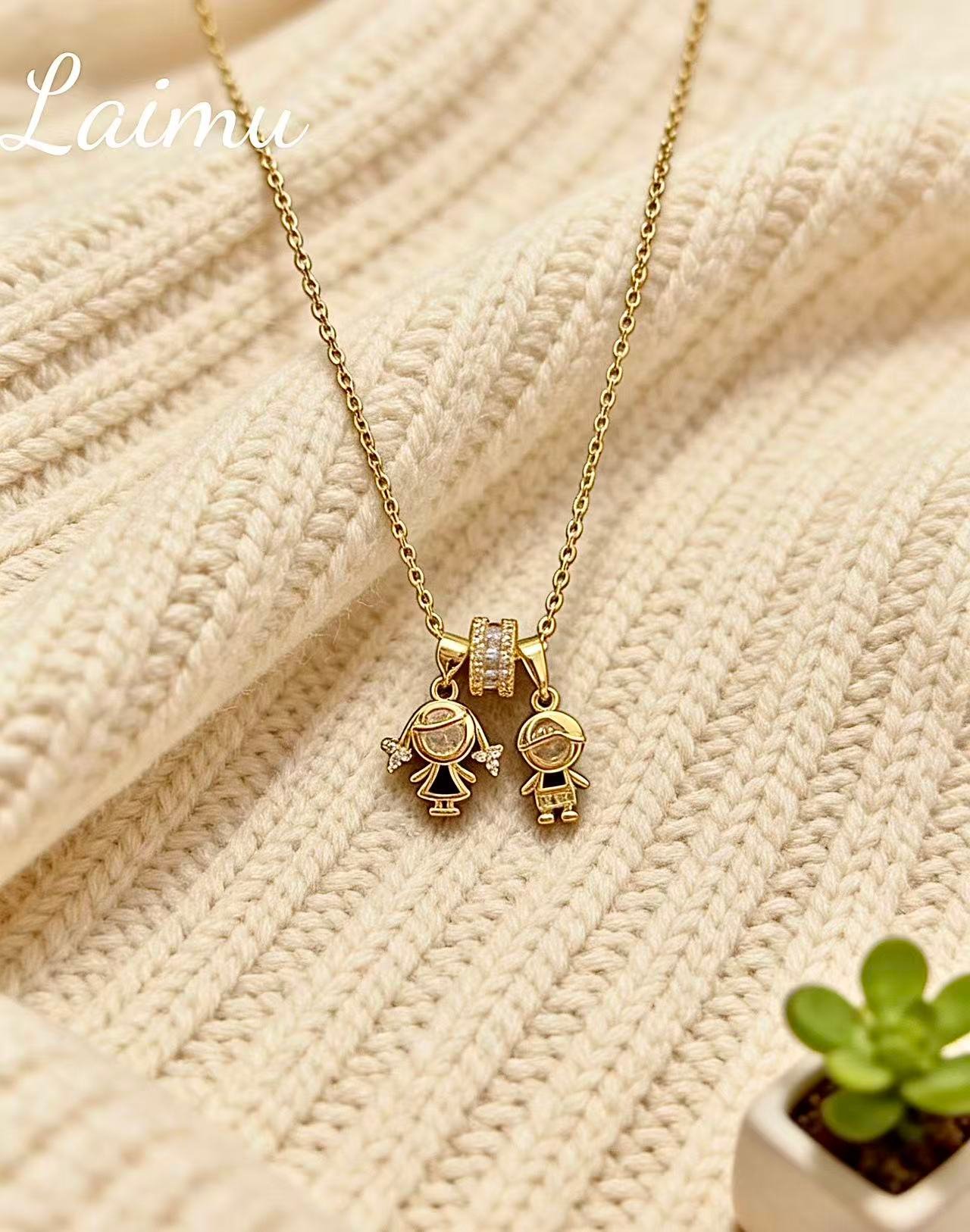 Stereoscopic Boy-Girl Pendant Necklace